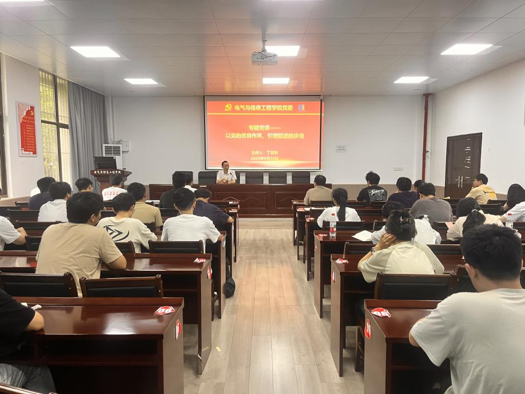 宣誓后,丁忠利以“以党的优良作风 引领前进的步伐 ”为主题讲授一堂专题党课,党课分别从“中国共产党为什么会成功、党的优良作风有哪些、新时代的学生党员如何践行”等三个方面进行阐述。他指出我们党从胜利走向胜利是源自先进的理论指导、永恒的宗旨意识、丰富的学习教育、严谨的理实结合以及彻底的自我革命精神等;强调“坚定理想信念、严明组织纪律、理论联系实际、密切联系群众、厉行勤俭节约”等优良作风是我们党的光荣传统,是战胜一切困难的法宝;他勉励全体党员在学习、工作和生活中,通过持之以恒地加强党性修养、持续地理论学习、不断地创新实践、积极地争当先锋模范,成为优良作风的先行者和示范者,在新时代新征程中展现青春风采。