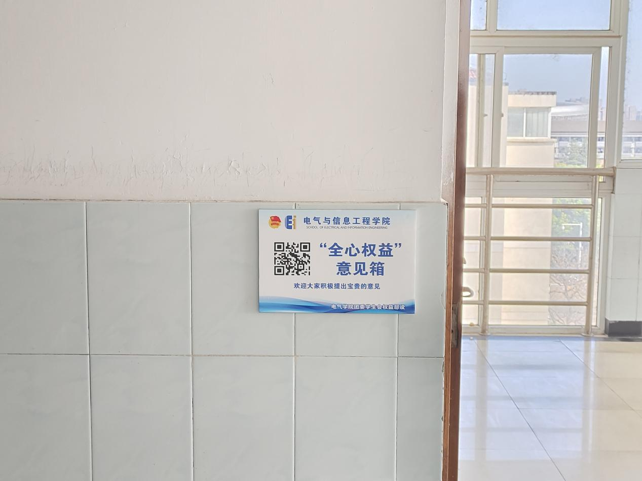 在23级、24级同学居住的A栋、C栋、E栋、K1、K2、L2栋各宿舍楼层楼梯口,统一张贴了专属意见反馈标识牌,同学们只需扫描牌面二维码,即可轻松提交各类诉求与建议。同时,电气楼原有线下意见箱继续保留,以满足不同同学的使用习惯和反馈偏好。后续,广东麻将规则