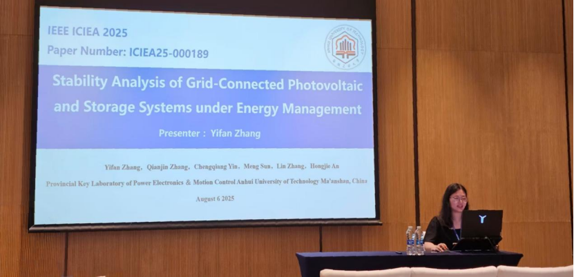 2023级硕士研究生张逸帆(导师:张前进)在本次会议中做了题为“Stability Analysis of Grid-Connected Photovoltaic and Storage Systems under Energy Management”的口头报告。