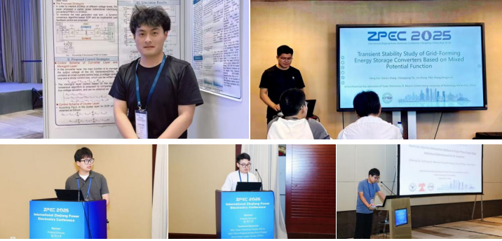 本次会议由浙江大学主办,IEEE电力电子学会(PELS)、中国电源学会(CPSS)以及IEEE PELS浙江/江苏/安徽分会等单位共同协办,旨在为全球电力电子领域的专家学者、工程技术人员和学生提供一个高水平交流平台,聚焦电力电子技术、能源转换与新兴应用的前沿进展。会议期间,多位国际知名专家围绕电力电子技术在可再生能源、电动汽车、功率半导体等热点领域的创新与应用作了多场专题报告,展示了当前行业的最新成果与发展趋势。张前进副院长应邀担任构网与微电网分会场主席,孙猛作了题为“Transient Stability Study of Grid-Forming Energy Storage Converters Based on Mixed Potential Function”的口头报告,提出一种基于混合势函数的构网型储能变流器暂态稳定性分析方法,为提升系统动态性能提供了新途径。蔡智恒作了题为“Harmonic Injection Modulation Method of Single-Phase Single-Stage DAB-Based Bidirectional AC-DC Converter”的口头报告,通过谐波注入调制策略有效提高变换器效率。黄凯作了题为“Passivity-Based Coordinated Control of Interlinking Converters for Interconnected DC Microgrids”的口头报告,提出基于无源理论的互联变流器协调控制方法,增强系统稳定性与鲁棒性。宋毛毛则作了题为“An Improved Power Margin-Based Coordinated Control Strategy for Hybrid AC/DC Microgrids”的口头报告,通过改进功率裕度协调策略提升混合微电网动态性能与供电可靠性。汪超以海报形式汇报了“Multi-Layer Control of Partial Power Interlinking Converters for DC Microgrid Clusters”,提出面向直流微电网集群的部分功率互联变换器多层控制架构,优化系统功率协调与运行经济性。
