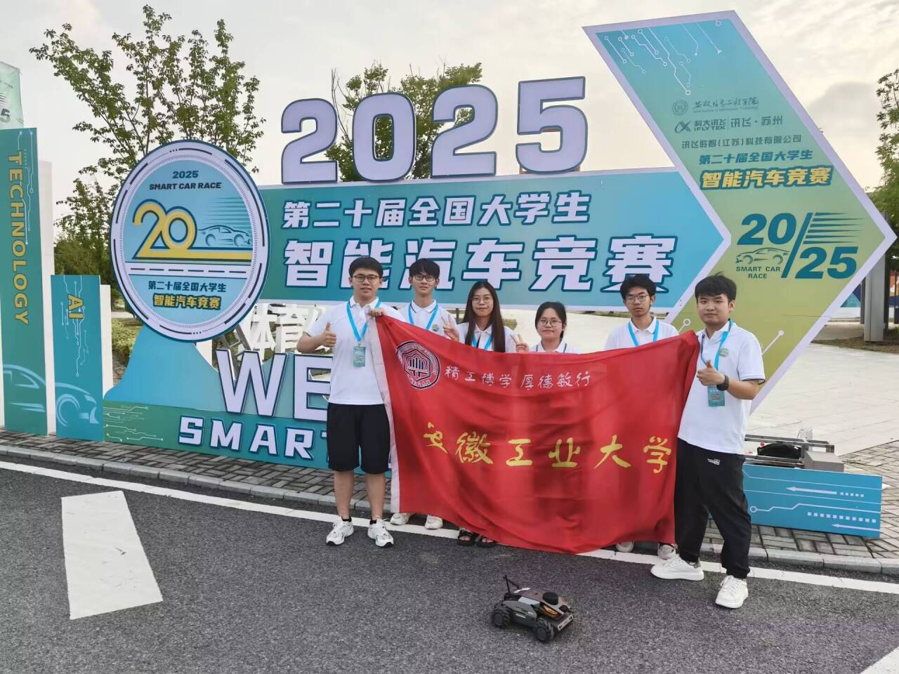 参赛学生在老师指导下,队员们团队协作,沉着冷静,凭借扎实的理论知识和实践动手能力,在赛场中展现出安工大学子风采。其中,夏日幻听队(队员:邵佳辉,张腾蛟,张劲松,卢彦君,汪忠池;指导老师:李丹)荣获电磁组一等奖;求真务实队(队员:闫军,叶子涵,张逸帆;指导老师:钱牧云)荣获模型组一等奖;番茄土豆队(队员:游子翔,蒋艳虎,郭策;指导老师:胡奥婷)荣获一等奖;冲云小队队(队员:王浩然,黄曌韬,叶家明;指导老师:刘一帆)荣获轮腿组二等奖;好好吃饭队(队员:陈锦坊,周星宇,张子庆;指导老师:范秀丽)荣获视觉组二等奖;荟灵湖队(队员:潘光辉,李逸飞;指导老师:李丹)荣获讯飞组二等奖。