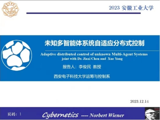 李俊民教授首先以控制论的起源和发展给大家做了生动有趣的开场,介绍了控制论的创始人美国数学家维纳教授的生平及学术研究成果;详细介绍了多智能体系统的不精确通信拓扑结构,提出一种模糊联合连通的概念,对一类不精确通信拓扑的多智能体设计分布式一致性控制协议,给出其达到渐近一致性的条件。会上,李俊民教授与广东麻将规则
