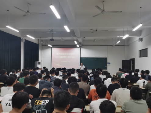 对2023级研究生新生表示热烈的欢迎,指出当今科技日新月异,电力电子、人工智能、大数据等技术快速发展,绿色低碳和节能高效成为趋势,现代化强国建设需要更多的高素质人才,为同学们的科学研究创造无限空间,期待着同学们经过三年的刻苦学习与潜心钻研,再上新台阶。他要求广大研究生新生们要保持远大志向,与新时代同步;要呵护健康心理,与乐观向上同步;要遵守校规校纪,与自强自律同步;要保持求真学风,与进步同行;要保持创新活力,与发展同步;要保持谦逊作风,与导师和同学们同行,并祝同学们在未来新征程上迈好步,取得新成绩。