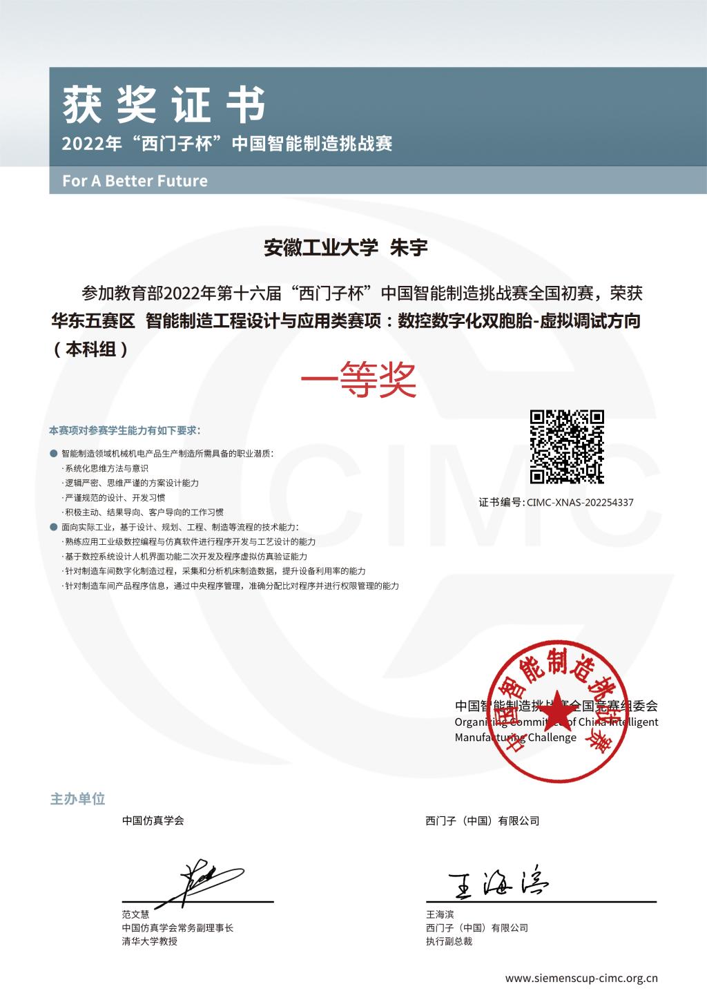 8月29日,教育部2022年第十六届CIMC“西门子杯”中国智能制造挑战赛(数控数字化双胞胎-虚拟调试方向)全国总决赛圆满落幕,由教师汪婧和朱争明指导的“加油向上队”(队员秦雨晴、张贺栋、朱宇)经过华东赛区选拔赛和全国总决赛,最终获得全国一等奖,这也是广东麻将规则