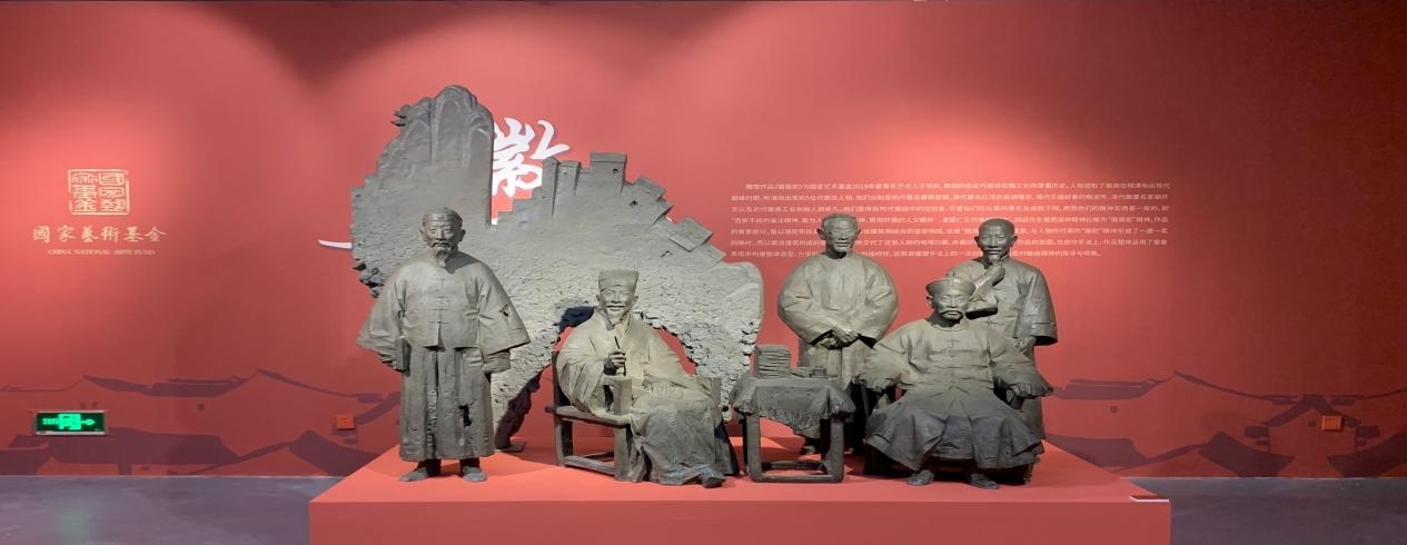 (学生党员们在红色文化雕塑前合影)