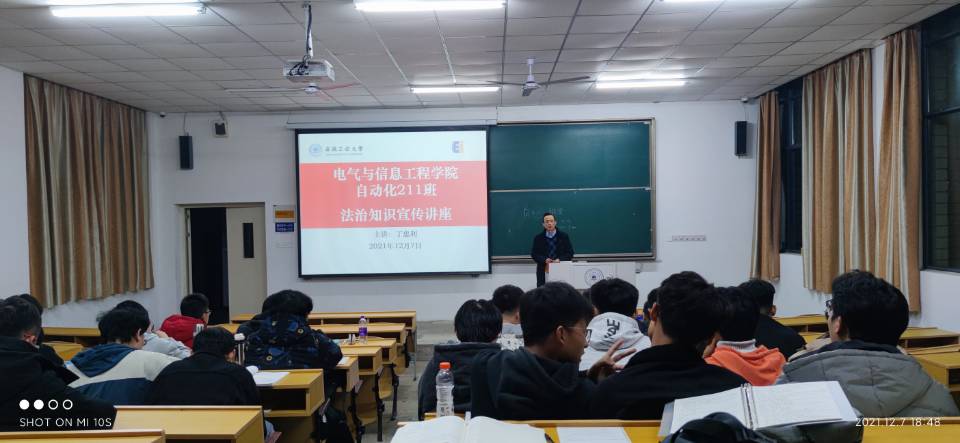 党委书记丁忠利到联系班级自动化211班开展法治讲座,讲座由班长王志钧主持,班级全体同学参加了报告会。