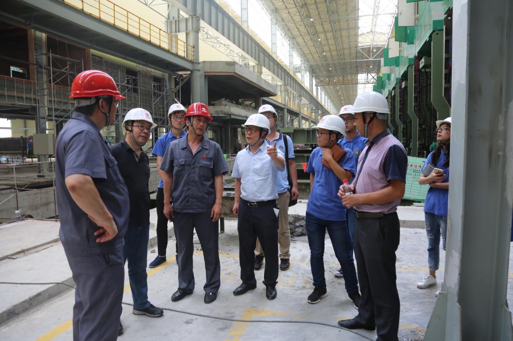 戴上安全帽,听着公司引导人员的善意提醒——“小心脚下,小心天上”,葛芦生带领实践队员走进了钢厂车间。谢文、杨金光边走边向队员们介绍钢厂的生产规模、先进设备与技术、工艺流程以及未来发展规划,葛芦生仔细听取相关情况介绍,不时就关心的问题询问,当了解到日照钢铁精品基地投资500多亿元,是山钢转型升级的生命工程、希望工程、质量工程时,他高兴地说:“我们的校友一直在为钢铁行业企业贡献青春、智慧和力量,并且大有作为,我们感到非常骄傲!”队员们也积极与校友们沟通交流,了解钢铁企业的生产效益、转型思路和未来走向,校友对于队员们感兴趣的问题都耐心细致地予以解答和指导。