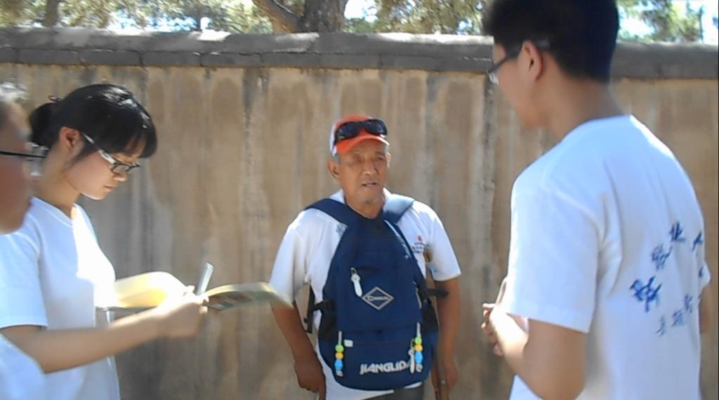 参观结束后,实践队员们对西柏坡工作人员以及游客进行了采访。在众多游客当中,一位身有残疾拄着拐杖的老人吸引了实践队员们的注意,经了解,这位老人曾经是一位革命老战士。这位老战士于一九六九年在张家口服役,因公负伤后提前退役,提到西柏坡,这位老战士是感慨万千。老战士说:“当时的条件是非常艰苦的,物资匮乏,什么东西都要借,借了又很难还,但是部队有纪律,借东西一定要还,所以那个时候我们常常为了还百姓东西要饿上几天的肚子……现在来到这里,参观一下当年革命领导们的生活,虽然我们那时也知道,但现在来看还是能感受到,他们与我们是站在一起的。”