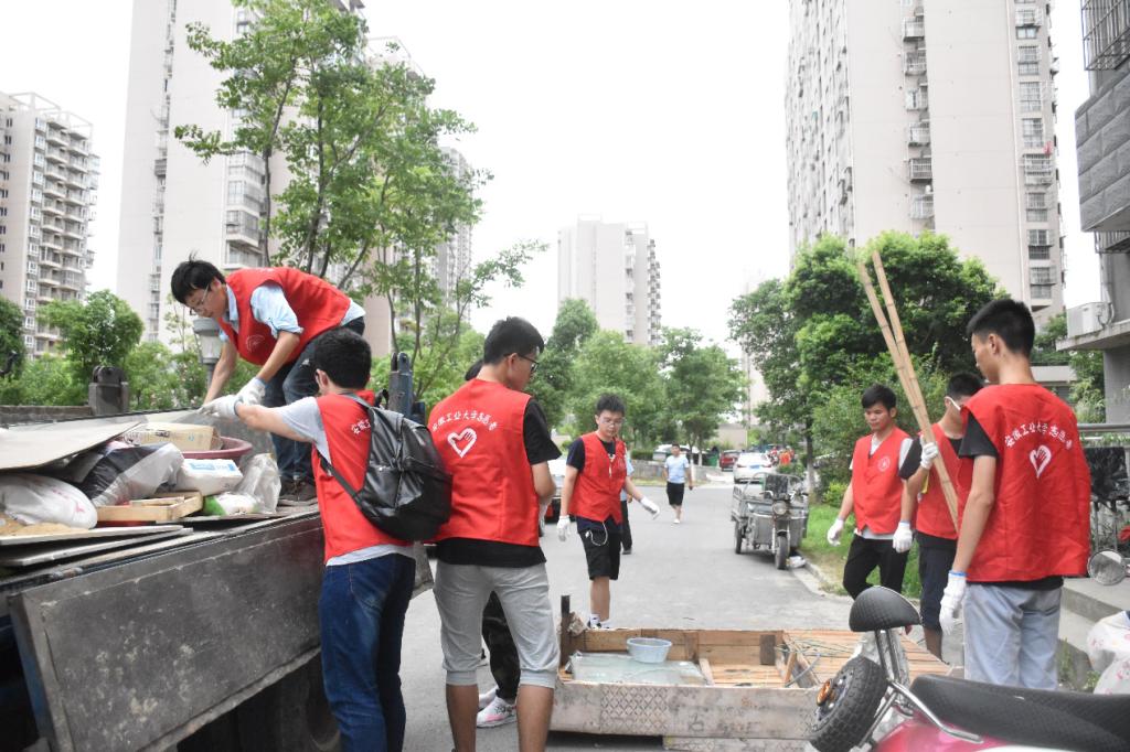 再多的杂草也消灭不了队员们志愿服务的热情,经过短暂的休息后,实践队又来到了小区楼下,帮助居民清理楼道中的杂物并放到垃圾车中。当有大爷问到在做什么的时候,周书记亲切地回答道:“这是安工大的学生来帮助我们清理出楼道中堆积的杂物,你们自己拿不动,不方便拿,他们来帮忙,让楼道更整洁,这样你们住的不就更舒服了。”大爷笑着说:“好事,好事。”居民的满意,是对实践队队员们辛勤工作最大的肯定。