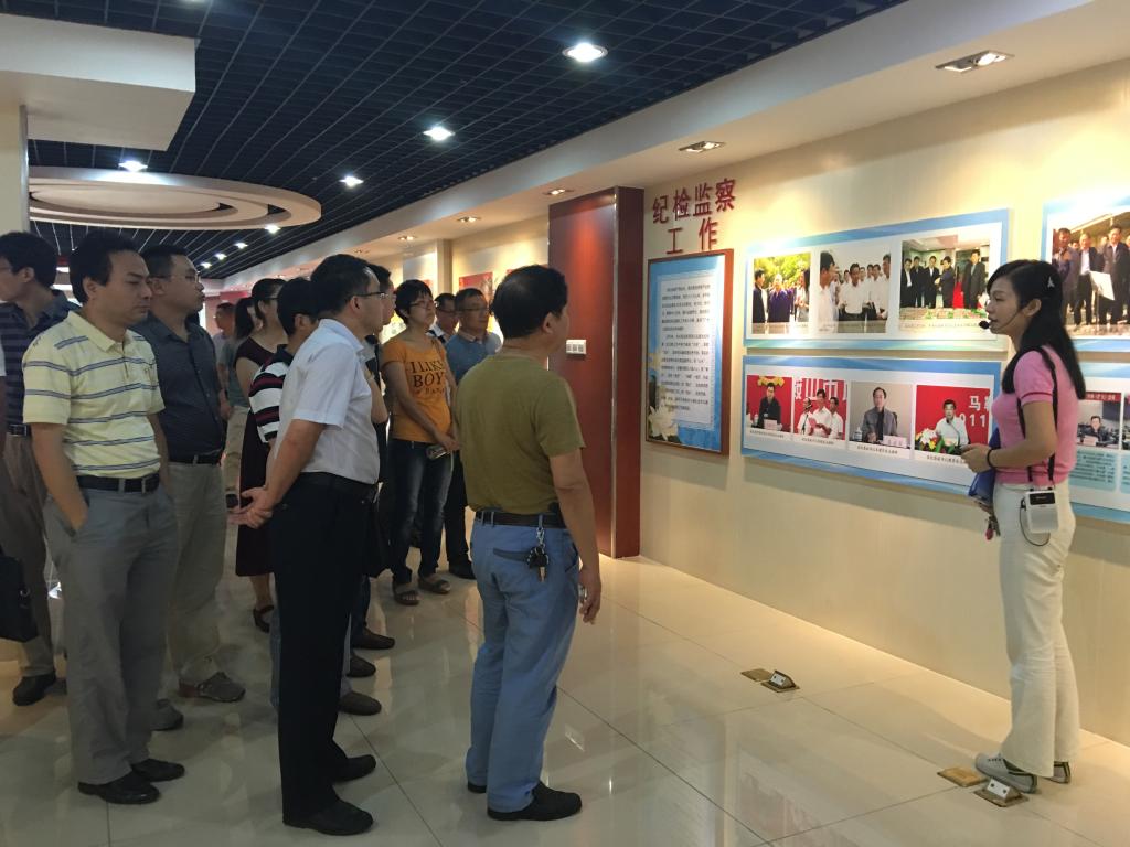 在学习教育现场,全体党员在解说员的引领下,步入展厅。展览共分为英明决策、党性教育、风范人物、纪检监察工作、预防职务犯罪、警钟长鸣、展望未来等七个部分,采用图文、影音、声光电一体化的表现模式,展示了党中央几代领导人关于党风廉政建设的重要论述,重温了改革开放以来中国共产党在反腐倡廉上的理论实践、重大举措和巨大成就,突出宣传了立党为公、勤政为民的先进典型,深刻剖析了腐败案件,具有强烈的冲击力和震撼力。