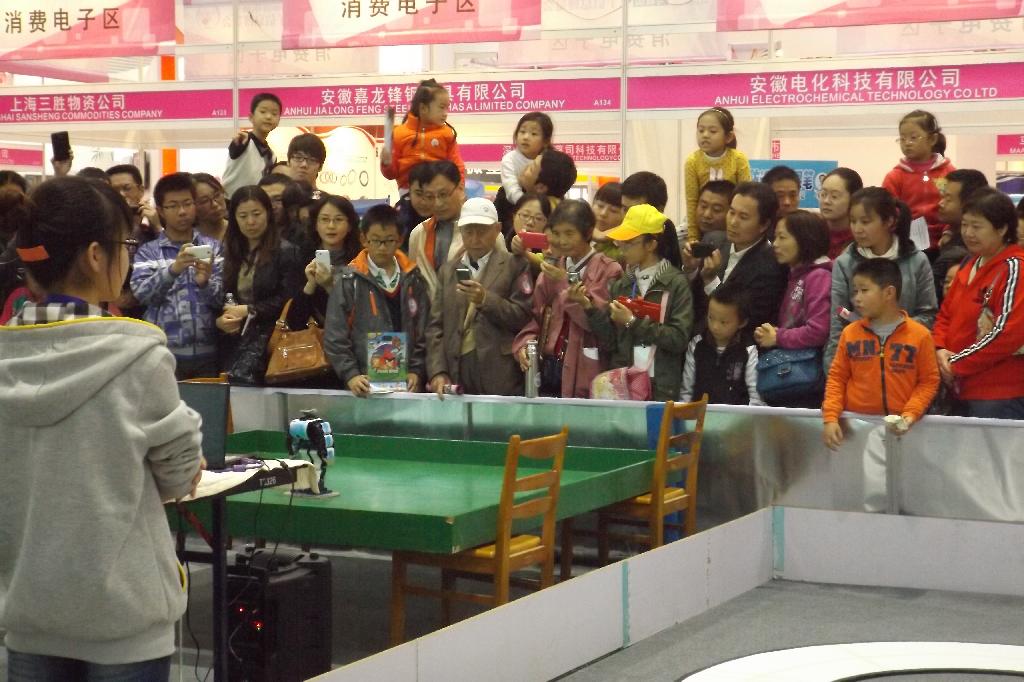 屹然队的机器人向观众们表演了一段艰辛的爱情故事,功夫小龙队的机器人为大家表演了源远流长的中国功夫。每当机器人跳舞时,展台周围总会挤满人群,特别是可爱的小孩们,不由自主的发出一阵阵惊叹。高难度的动作,优美的舞蹈,赢得了一批又一批观众的阵阵喝彩。
