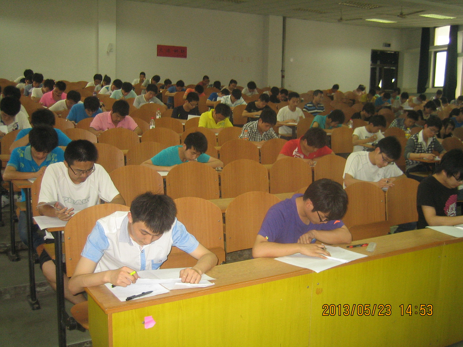 2012级在第十三周和十四周组织了大学英语、C语言及程序设计、高等数学A2、大学物理A1等四个科目的期中模拟考试。大一年级全部490多名同学参加了此次模拟考试。本次考试由学生会高年级同学监考,大一辅导员尚全、徐悦老师全程在位巡考。