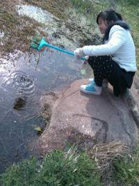 2013年4月8日下午两点钟,仪122班同学携带着准备好的扫把、垃圾袋、垃圾桶、铲子等工具先在阶梯教室下集合,怀着饱满热情的情绪步行来到荟灵湖。活动总共进行了一个半小时,过程中同学们不怕脏,不怕累,对湖边路上的丢弃垃圾做了细致的清理,对湖里漂浮的塑料袋等也利用各种工具进行了打捞清除,特别是荟灵湖边行人随处丢弃的口香糖等难以清扫的污浊,也购买了专用的铲子进行了挖掘清理。一些路过荟灵湖的行人,看到同学们辛苦的样子,还主动参与到了清扫垃圾的活动中来。