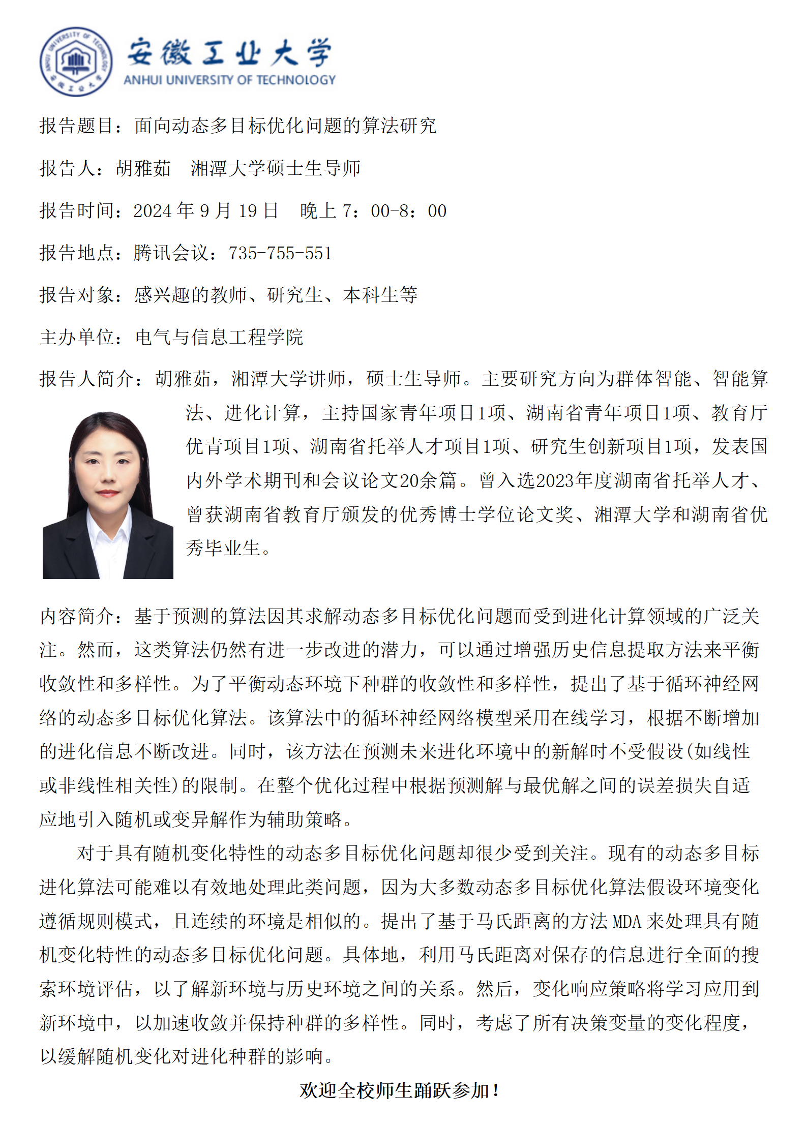 上一条:砺山学术报告之四十-动态环境中的进化优化