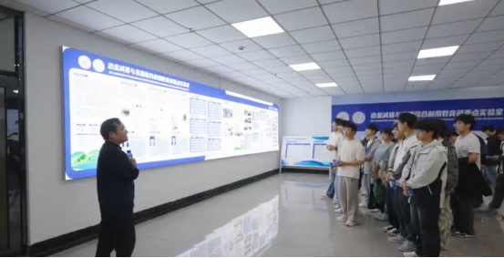 随后,师生一行来到冶金减排与资源综合利用教育部重点实验室,实验室老师详细介绍了实验室在冶金污染物治理、固体废弃物资源化利用等领域的研究进展,以及其在推动行业绿色发展、服务区域经济建设所发挥的重要作用,参观过程中,老师再次强调安全操作要点,进一步强化学生实验室操作安全意识。学生们认真聆听、积极提问,实验室老师耐心解答学生疑问,现场交流氛围浓厚。