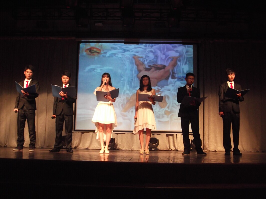 “青春华章”配乐诗文朗诵大赛在旧大活隆重举行。大赛以“青春 理想 中国梦”为主题,参赛选手由2014级各班代表队组成,现场评委有团委副书记武梦娇、学生会主席王志刚以及各部部长等。