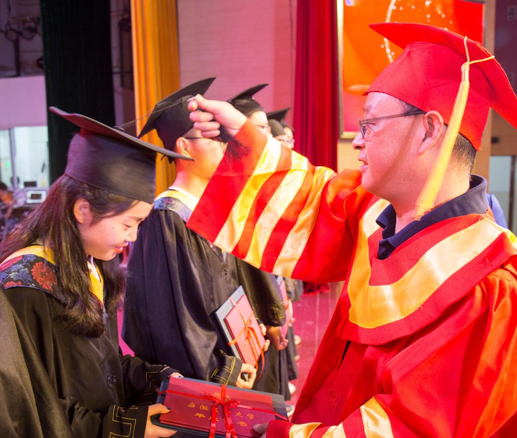 会上,刘明和院长刘晓东为毕业生代表正冠拨苏、颁发毕业证和学位证。举行了毕业生献给母校的纪念品捐赠仪式,院党委书记叶凤华、刘晓东和毕业生代表共同为大家展示了纪念品图样。刘晓东宣读了省双优生、校优秀毕业生的表彰决定,郭宏宣读了2019届校友联络员名单,在主席台就座的领导为获奖学生颁发了荣誉证书,为校友联络员颁发了聘书。教师代表沈浩寄语毕业学子:期待未来、期盼再见、感恩生活。毕业班辅导员陶源表达了对学生的不舍与关爱之情,叮嘱大家照顾好自己,常回家看看。宝钢奖学金获得者陈钢代表毕业生发言,回忆了大学生活中的精彩瞬间,表达了毕业离别的心声。