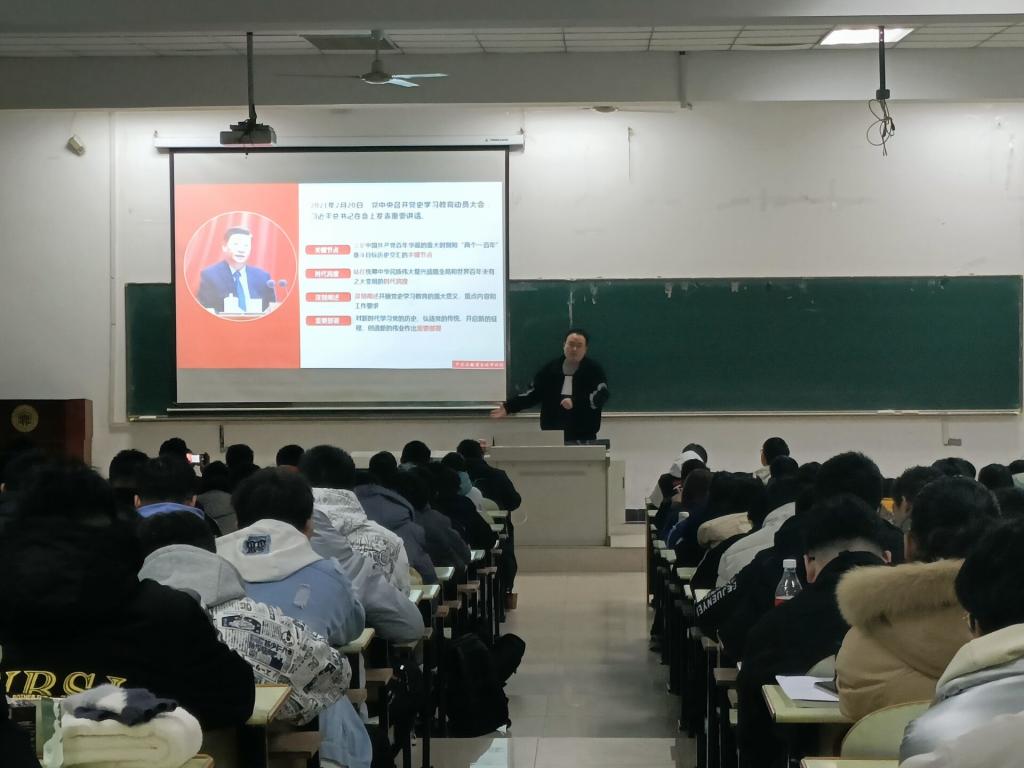 在佳山校区教三南203开展2021级新生入党启蒙教育。大一辅导员、学生测控党支部书记盛樟主讲,2021级新生参加讲座。