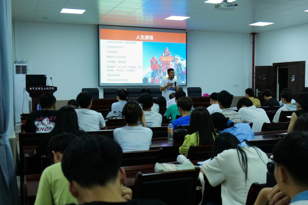 报告会上,夏玉钦向汝志刚颁发了“就业引航导师”聘书。汝志刚向同学们介绍了他多年以来求学、工作、参加社会活动的经历,分享了他三次成功登顶珠穆朗玛峰的奋斗与艰辛、荣誉与成就,以自己的成长过程激励学弟学妹们不惧艰难,敢想敢干、敢于追梦,并表达对父母、家乡人民和母校的感恩感谢。汝志刚的个人经历、人生感悟,使同学们更加真切地感受到:一定要拥有梦想,并为实现梦想不懈奋斗。