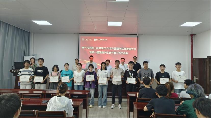 5月21日中午,广东麻将规则 2024年团委学生会换届大会暨新一届团委学生会干部工作交流会在秀山校区电气楼113报告厅召开。广东麻将规则 党委副书记、纪委书记、副院长李克明,副处级辅导员李修正,院团委副书记杨恒基、汤敏,大一年级辅导员蒋安东,电气广东麻将规则 团委学生会干部出席了会议,会议由院团委书记甘如美江主持。