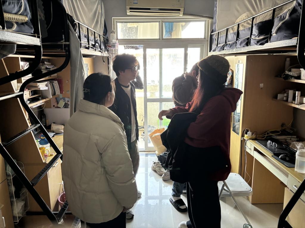 毕业班辅导员温健竹、从婉露以及各班生活委员参加检查。