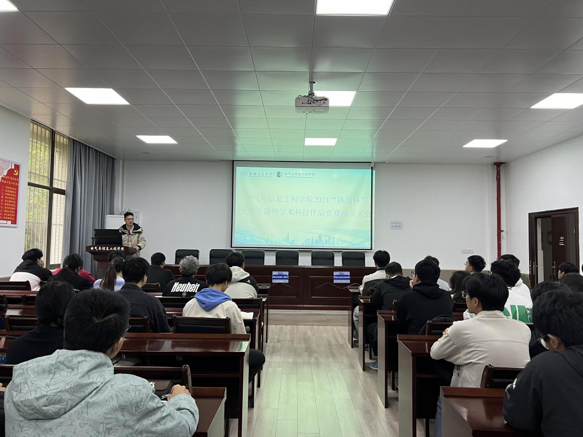 在电气楼113教室举行2024年“挑战杯”大学生课外学术科技作品竞赛动员大会。会议由院团委副书记杨恒基主持,院团委学生会干部、各班级代表参加。