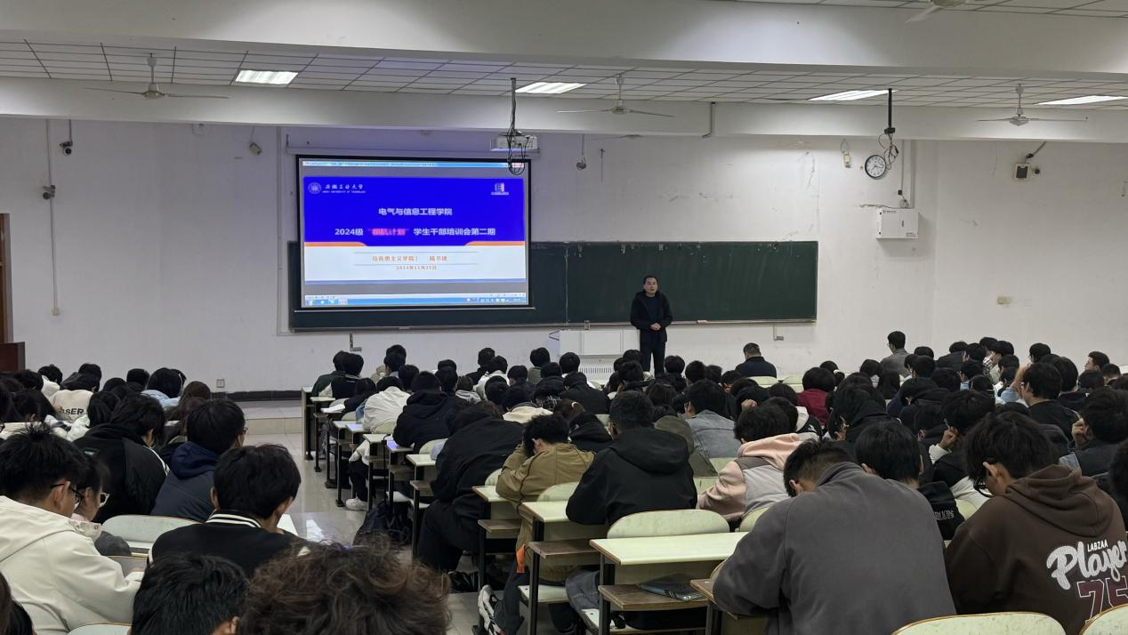 培训会上,陆书建老师以高等数学的学习为切入点,给大家分享了自身学习经历与成长感悟。他强调学生干部是班级管理的核心力量,是连接老师与学生的桥梁和纽带。他通过实例详细讲解了班级管理的基本原则和方法,从沟通技巧、团队协作、时间管理等多方面展开,让大家深刻了解到作为学生干部应具备的素质和能力,以及如何在实际工作中运用这些技巧来提升班级管理效率。同时分享了优秀学生如何充分利用资源勤奋学习的故事,激励学生干部要勤于学习、敏于求知,主动突破舒适区,敢于迎接挑战,注重自我提升,增强综合能力,做好班级的服务者、示范者和引领者,带领全班同学砥砺前行。