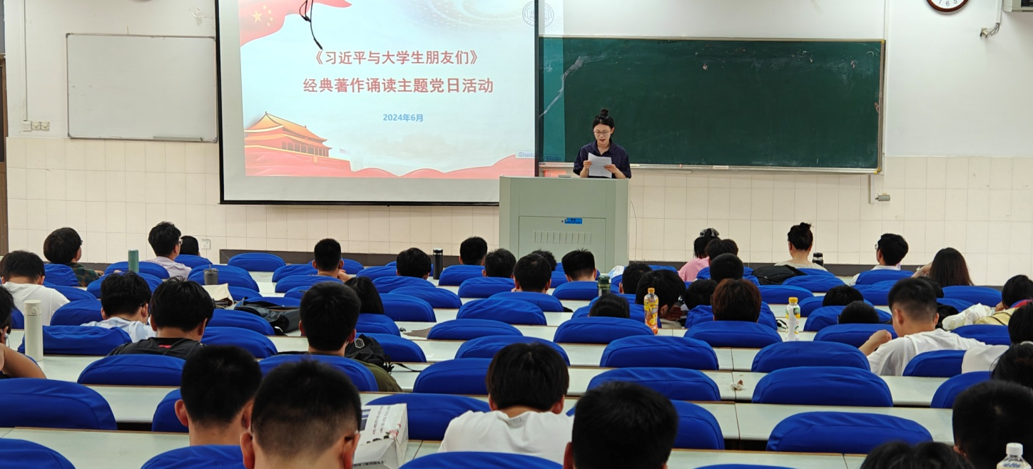 会上,来自研究生学术型党支部的党员代表黄雅玲带领大家学习了《习近平与大学生朋友们》中的一个章节:“习近平总书记勉励我们爱国、励志、求真、力行”。她以饱满的精神状态投入到诵读中,声音洪亮而坚定,带大家重温了习近平总书记来到北京大学的采访和学习经历。习近平总书记勉励广大青年要“爱国、励志、求真、力行”,努力成长为德智体美劳全面发展的社会主义建设者和接班人,让中华民族伟大复兴在奋斗中梦想成真。