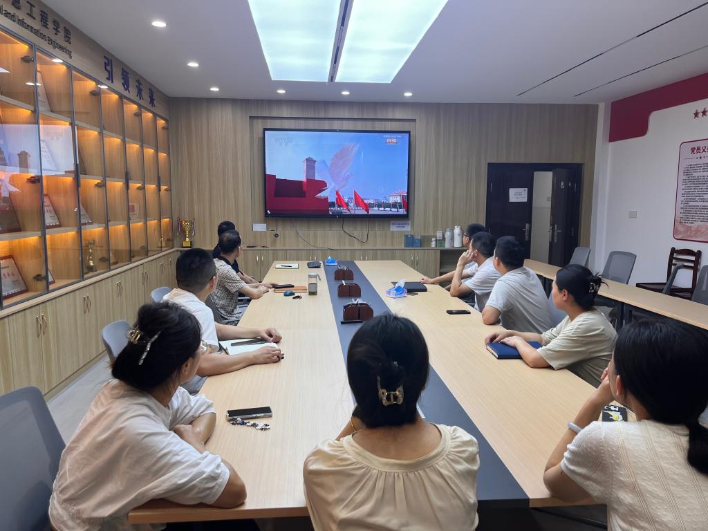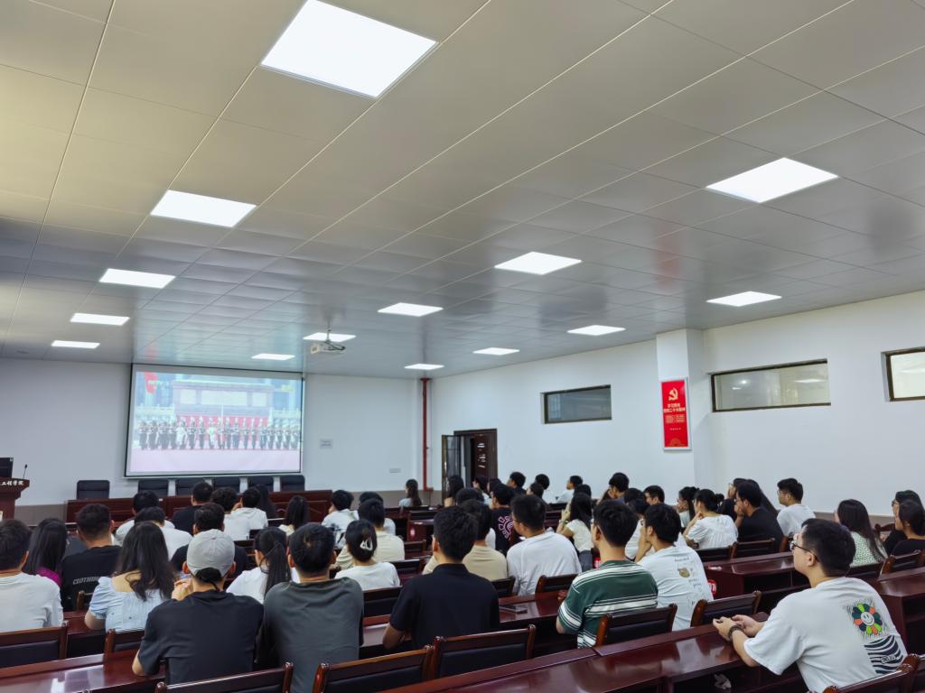 组织师生分别在大学生活动中心、电气楼113和308会议室集体观看现场直播,师生们沉浸式体验了一堂生动的爱国主义思政课。
