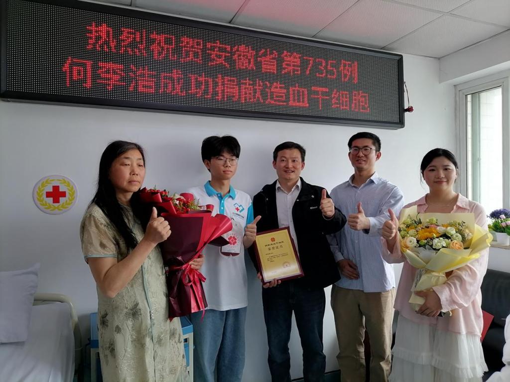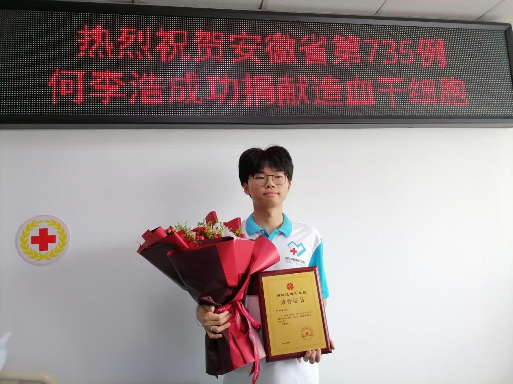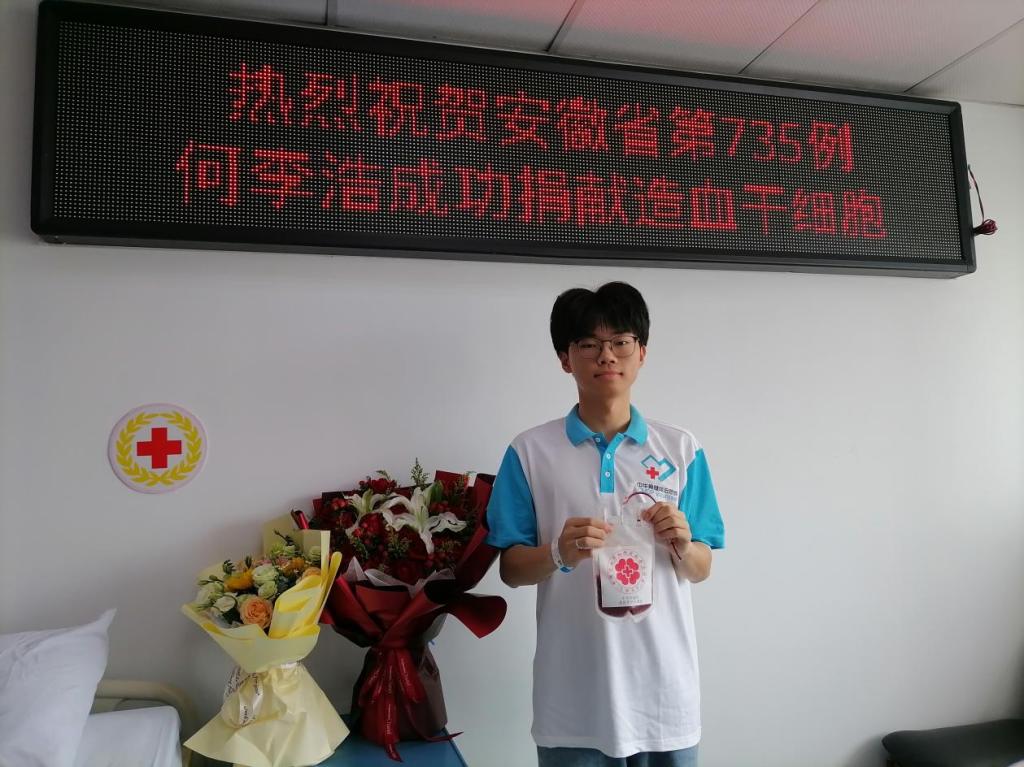 第4位捐献造血干细胞的在校大学生,也是马鞍山市第111位造血干细胞的捐献者。