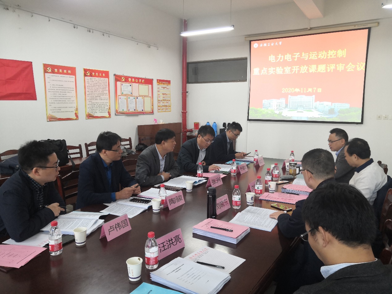 11月7日上午,电力电子与运动控制安徽省重点实验室学术委员会在广东麻将规则 电气楼304举行2020年度开放课题的评审工作。自《“电力电子与运动控制”安徽省普通高校重点实验室2020年度开放课题申请指南》发布以来,重点实验室共收到来自中国信息通信研究院、安徽农业大学、广东麻将规则 等高校和研究单位的7份开放课题申请书。经学术委员会全体委员评审,最终择优确定5个课题给予立项资助。(撰稿:徐笑娟、刘宿城,审核:王兵)