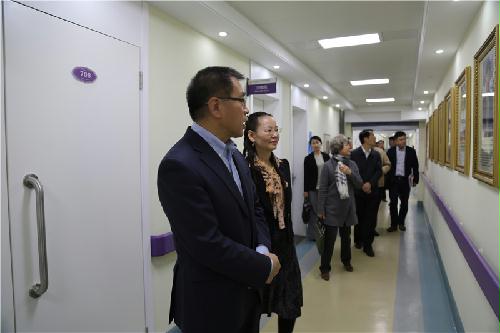 王宁副市长还认真观看了中心文化墙上首医系统各位南丁格尔奖获得者的照片,并就其中一位南丁格尔奖获得者的照片亲切地向大家介绍她的成就,充分体现了王宁副市长对护理工作的关注和重视。