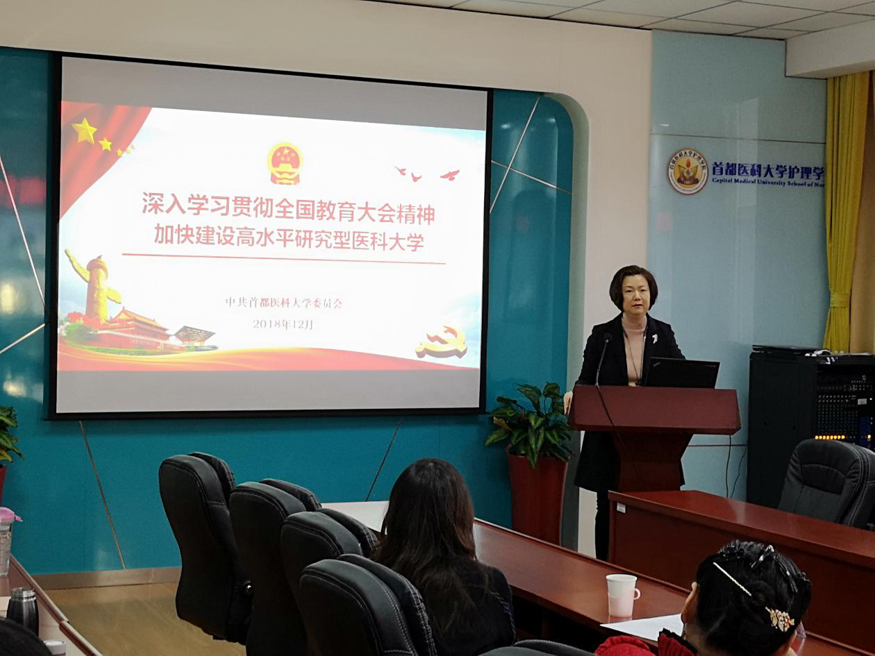 2018年12月26日下午,校党委常委、纪委书记侯瑾为广东麻将规则 全体教师上了一堂题为《深入学习贯彻全国教育大会精神,加快建设高水平研究型广东麻将规则 》的专题党课。广东麻将规则 党总支书记魏京云、院长吴瑛、副书记庞文云、副院长杨芳宇和王艳玲,以及广东麻将规则 全体教职工参加了此次学习。党课由党总支书记魏京云主持。