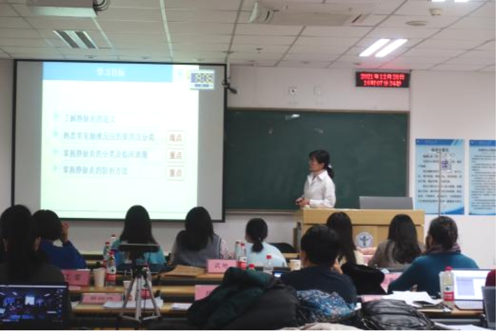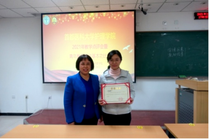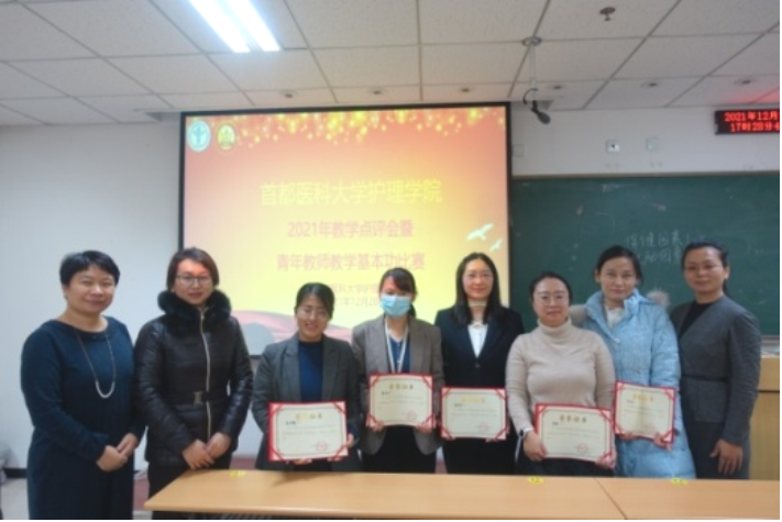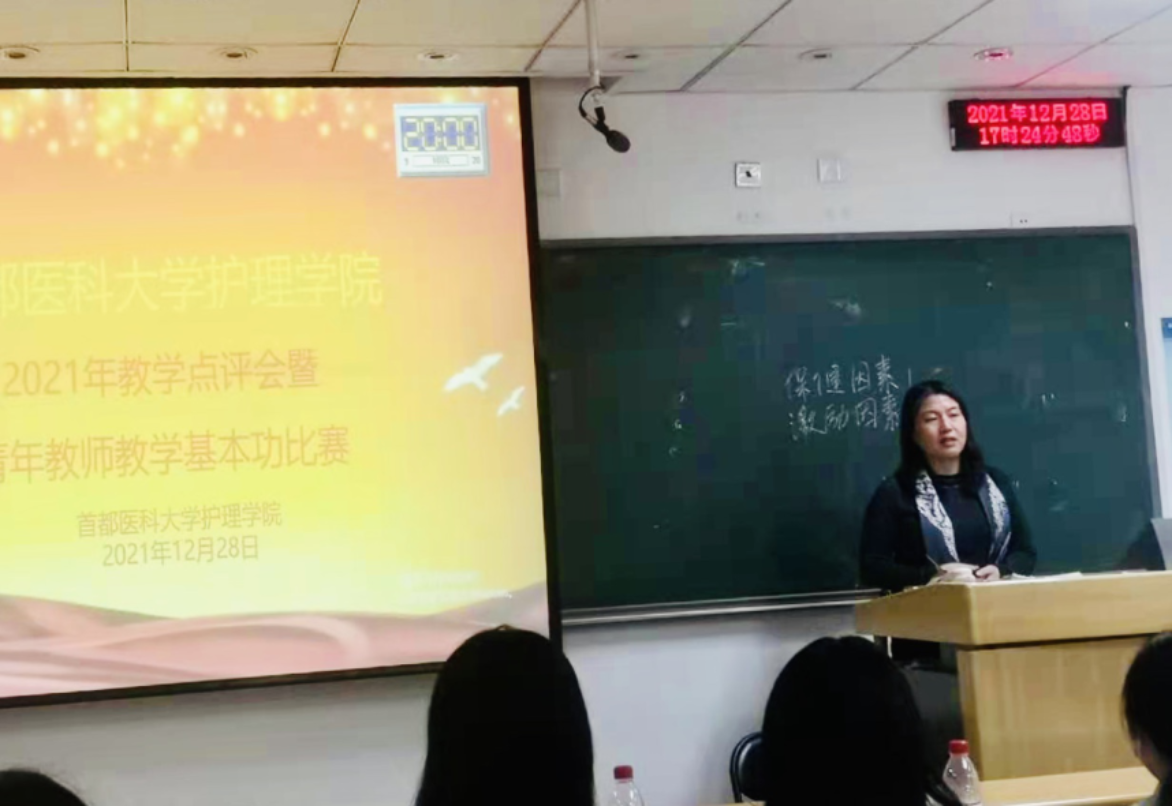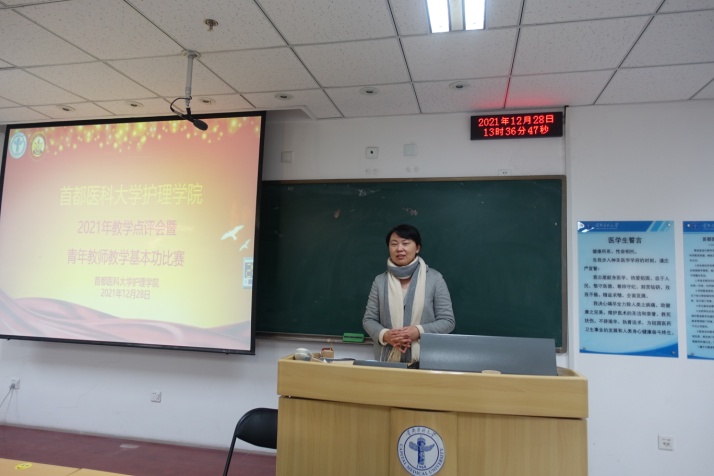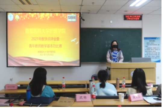 为培养青年教师爱岗敬业、严谨治学的态度,激发青年教师更新教育理念和掌握现代教学方法的热情,进一步推进课程思政建设,广东麻将规则 于2021年12月28日下午,在校本部第一教学楼510教室举办了2021年教学点评会暨青年教师教学基本功比赛。本次比赛由专家评委和学生评委组成,校、院两级教学督导赵素梅老师、北京市教学名师王雯教授、庞文云副院长、肖倩副院长、学系主任王艳玲副教授、岳鹏副教授、教学主管景丽伟教授到场担任专家评委,学生评委由广东麻将规则 2019级四年制护理专业5名同学担任。广东麻将规则 教务处武艳处长、广东麻将规则 刘均娥院长出席了比赛,全院教职工线上、线下全程观摩了比赛比赛由庞文云副院长主持。